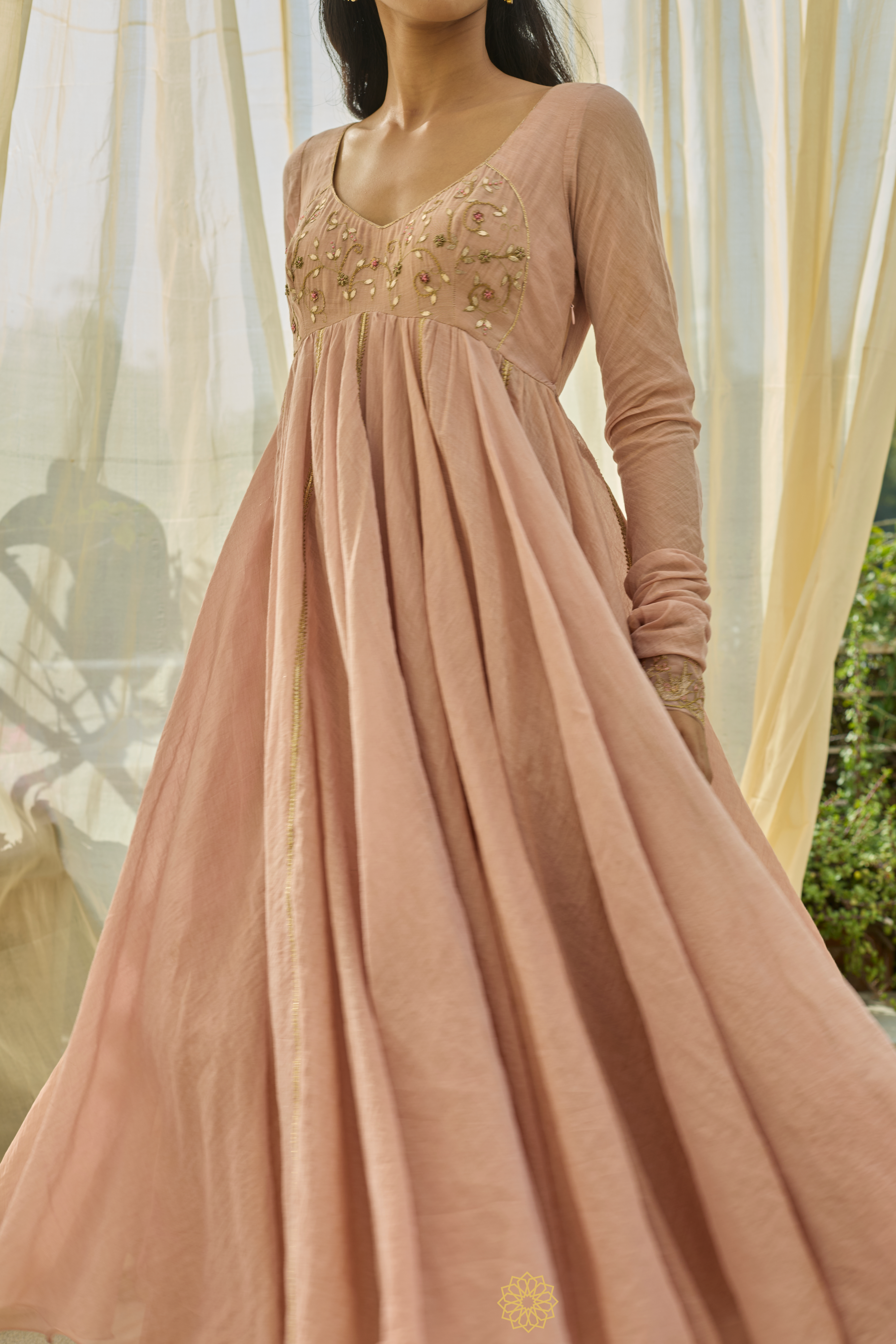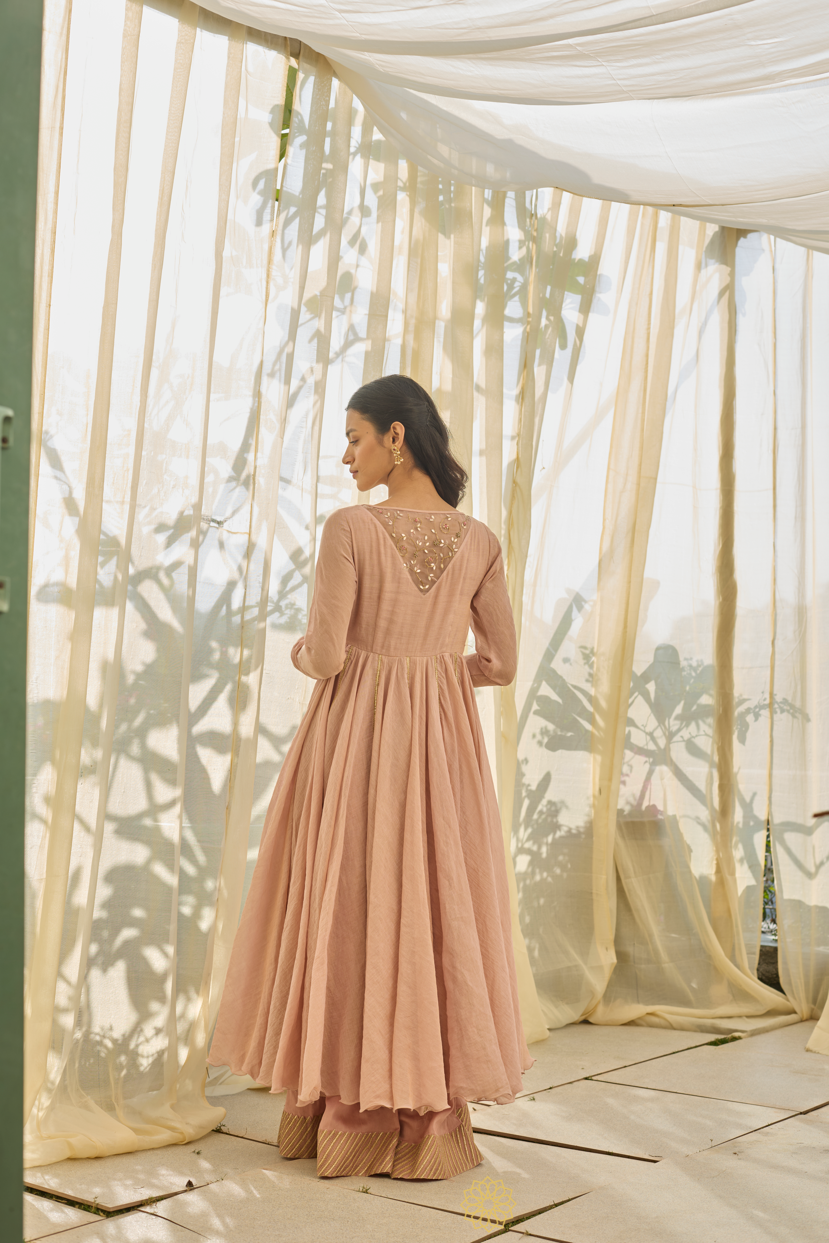 ANARKALI & SHARARA – Soft pink tissue chanderi anarkali and tonal sharara with gota-adorned hemline