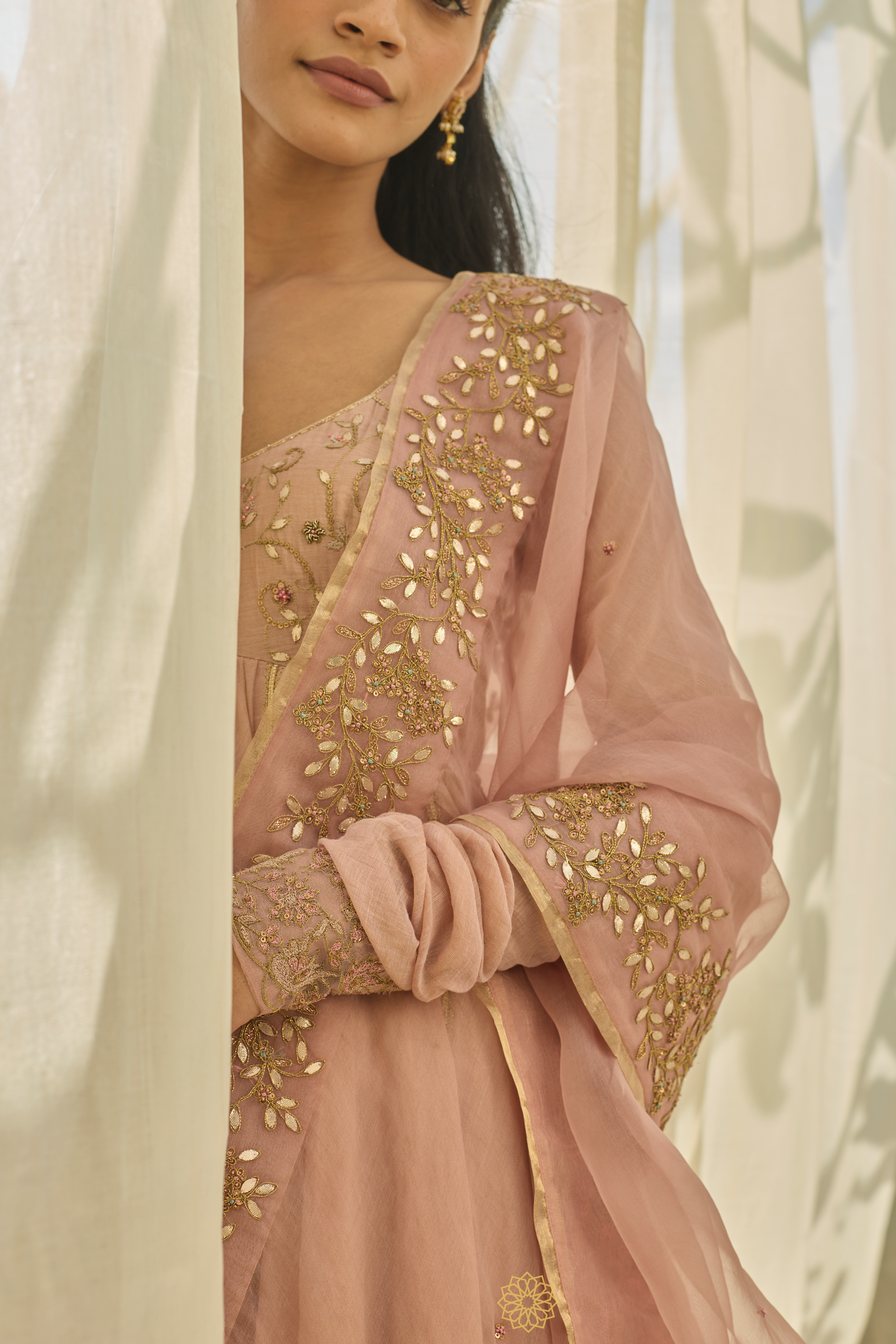 EMBROIDERY – Intricate floral veil embroidery with gota appliqué detailing